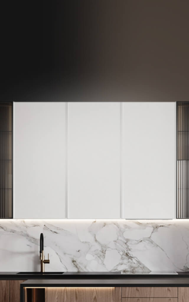 Фасад: МДФ эмаль с фрезеровкой + натуральный шпон