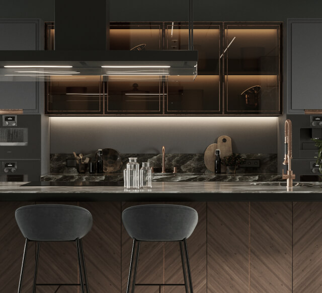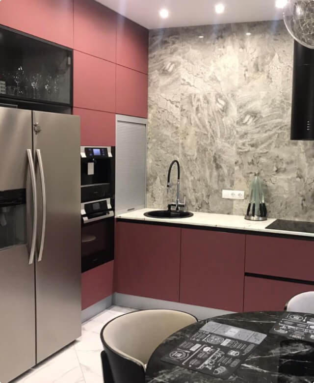 Особенности: Комбинированные кухни всегда выглядят стильно и оригинально. Особенно когда в кухне сочетается контраст цветов и материалов которые способны подчеркнуть достоинства друг- друга! Такой дуэт никогда не будет утомительным для глаз ведь иметь природные натуральные оттенки в своем доме это всегда замечательно …